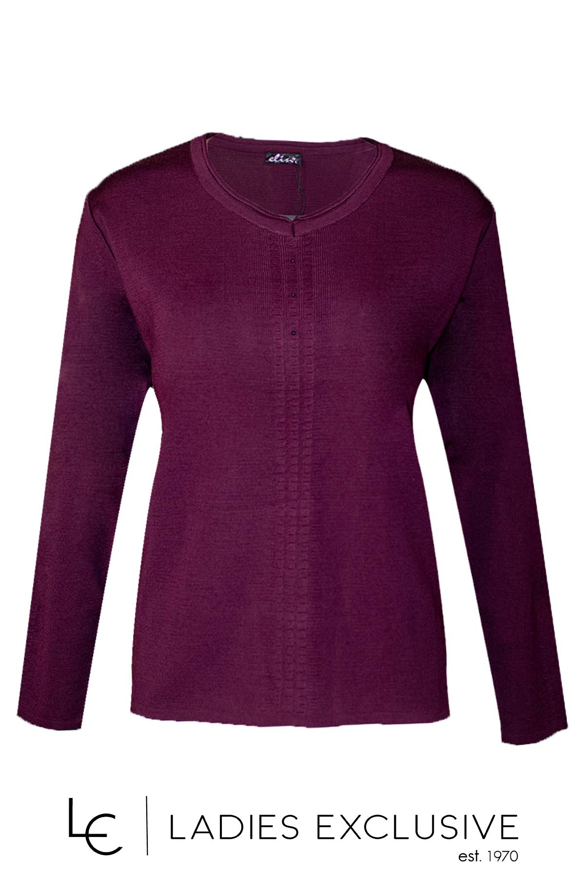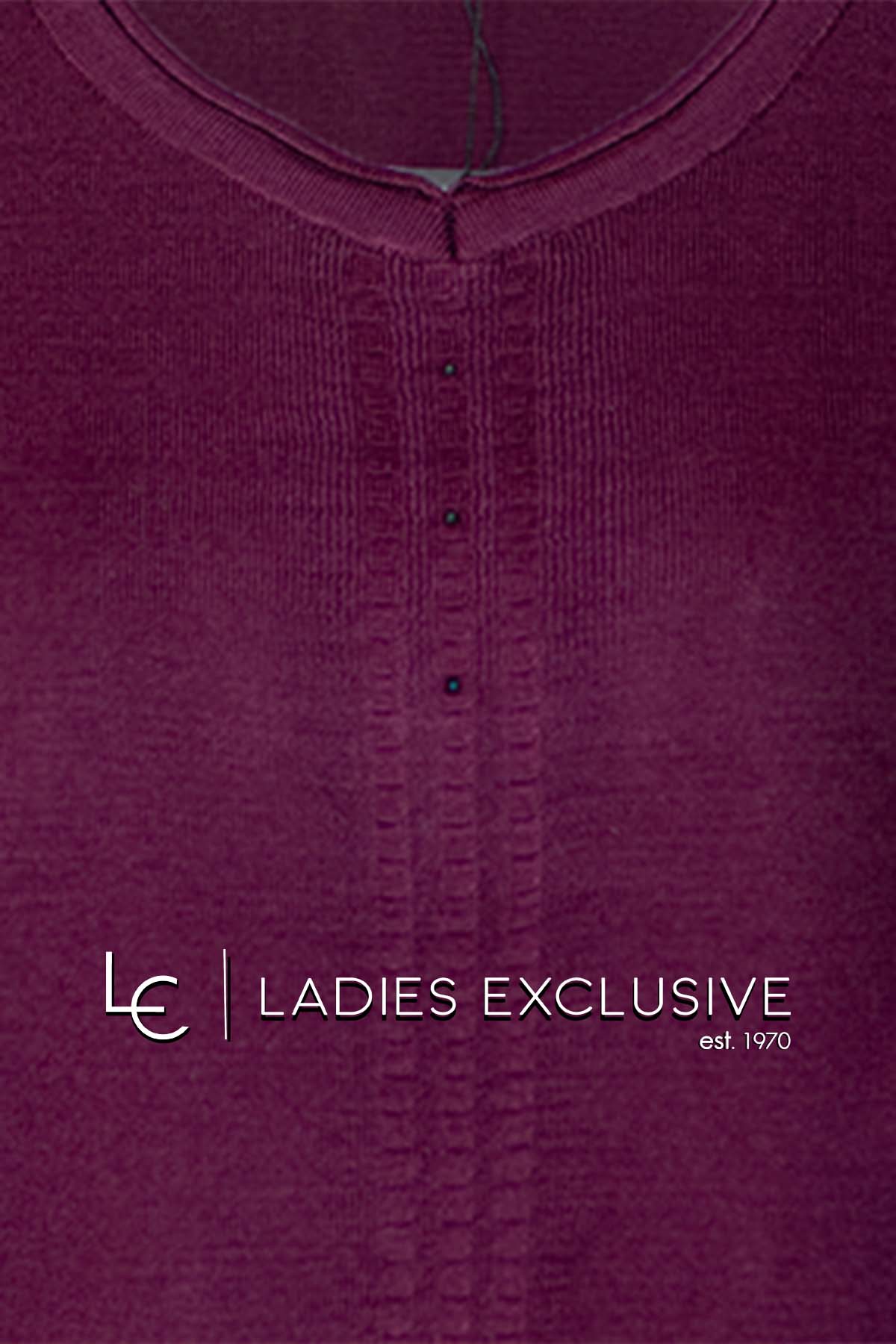 ELIN Μπλούζα μωβ μάλλινη με άνοιγμα v και διακριτικά στρας.
