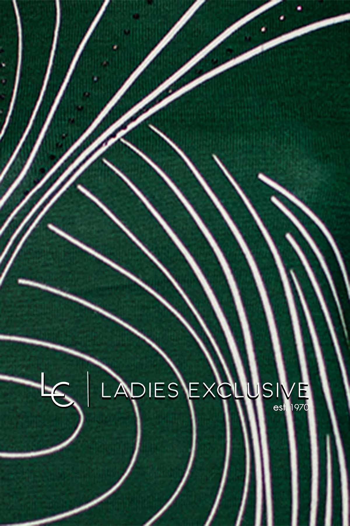 ELIN Μπλούζα πράσινη μάλλινη με στάμπα γραμμές και στρας.