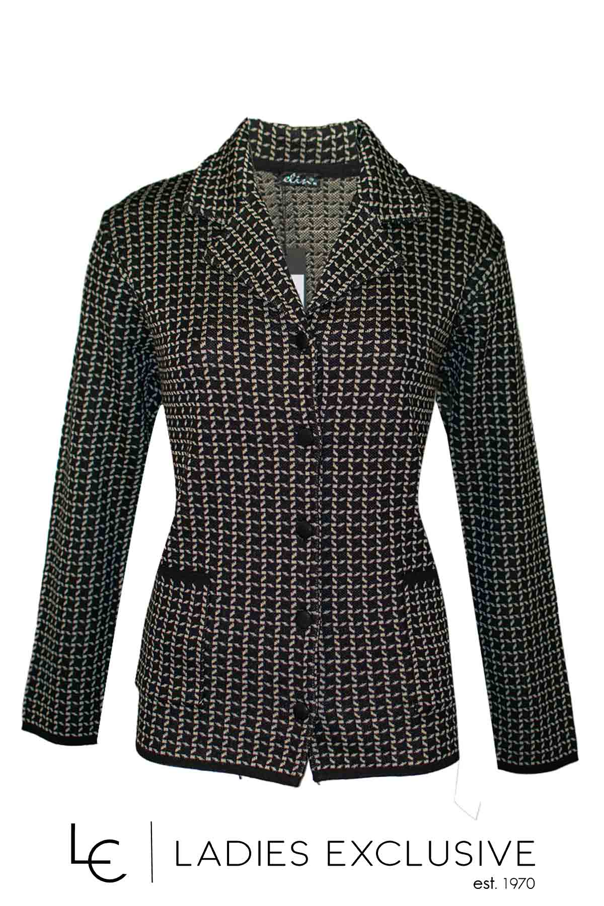 ELIN Ζακέτα ασπρόμαυρη μάλλινη με πέτο γιακά, κουμπιά και τσέπες.