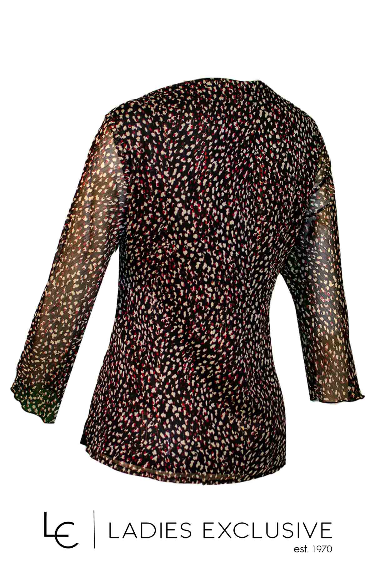 VIDAL Μπλούζα animal print σε μπορντώ απόχρωση από μουσελίνα, με βολάν στο μπροστινό μέρος.