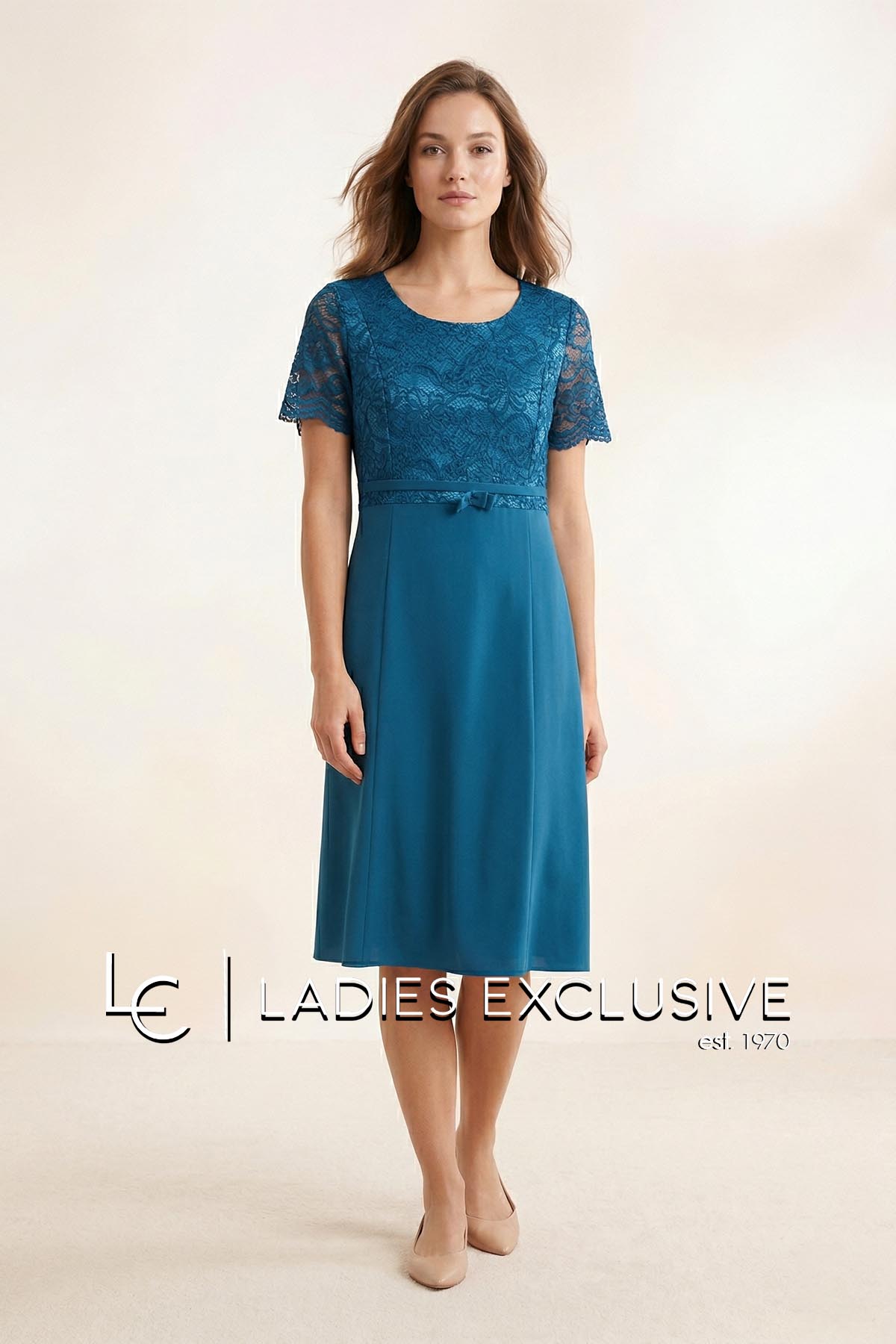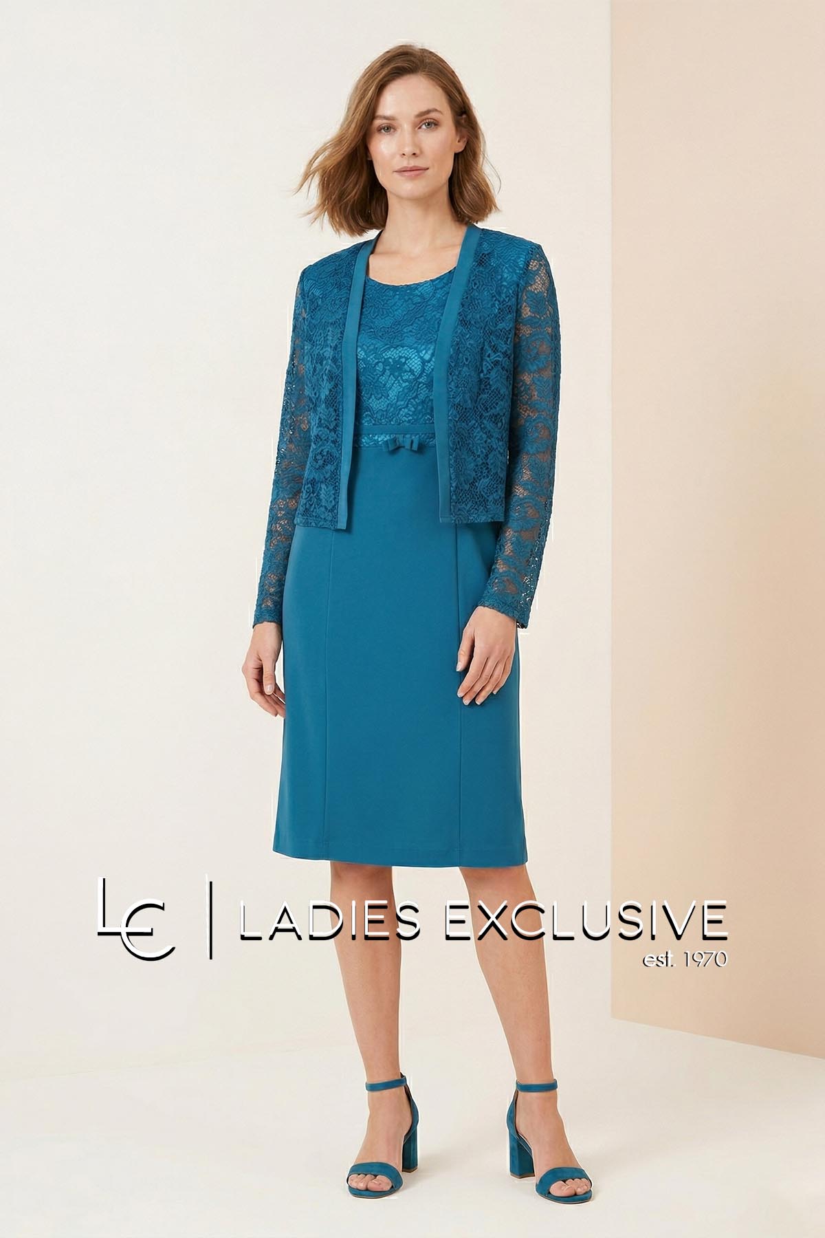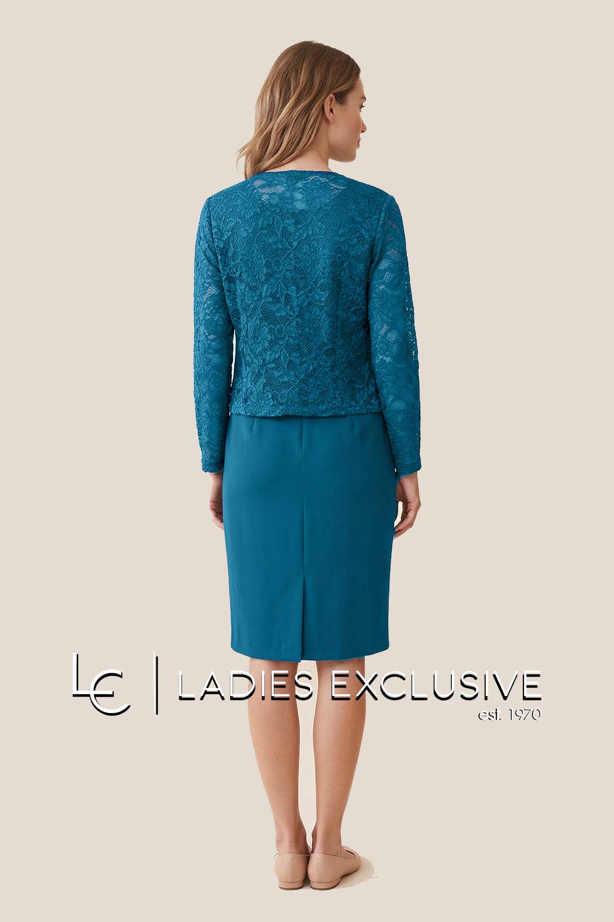 VIDAL Σετ 2 τεμαχίων που αποτελείται από μπολερό πετρόλ από δαντέλα και φόρεμα κοντομάνικο κρεπ με δαντέλα στο πάνω μέρος.