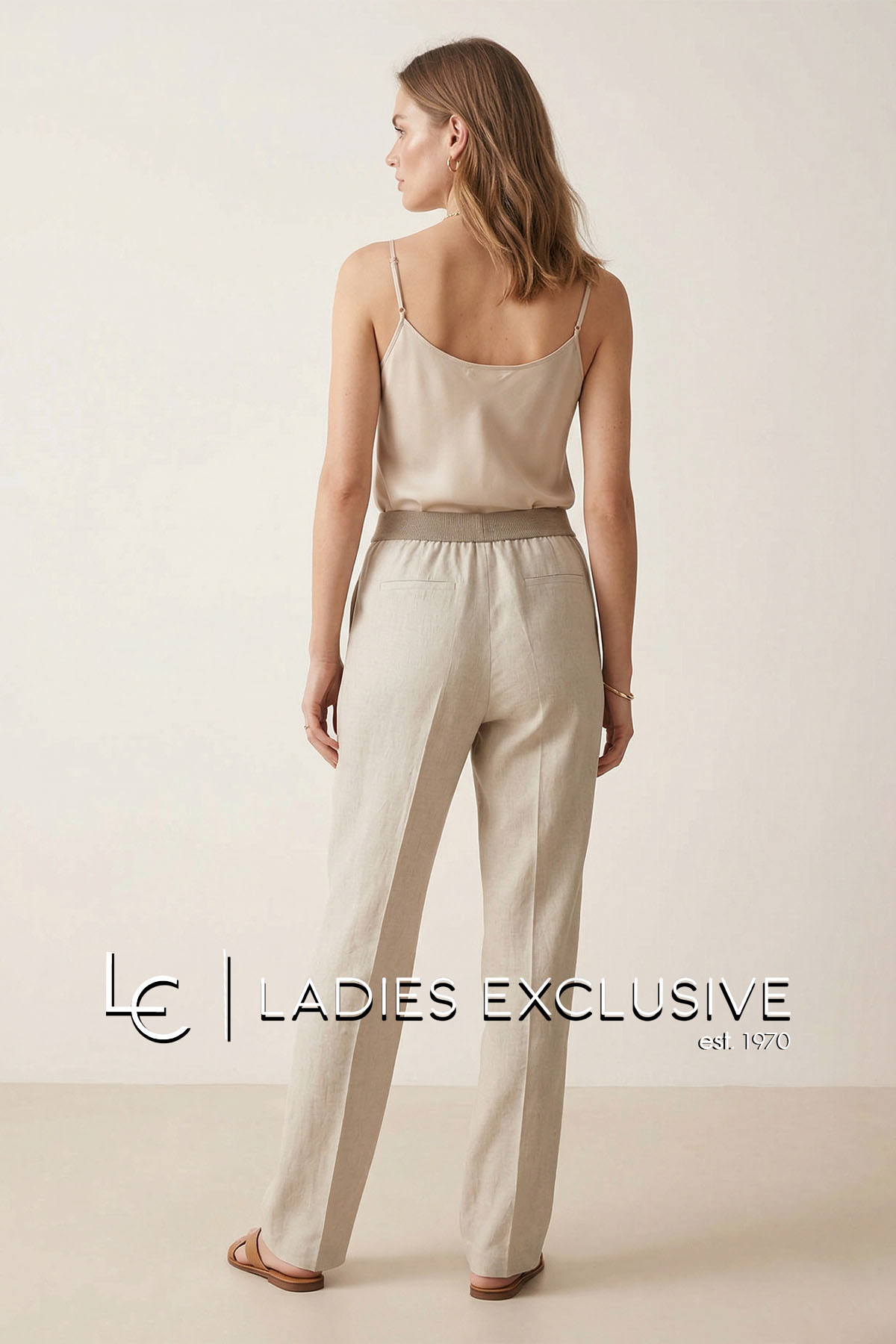 BELLA P. Παντελόνι μπεζ λινό με λάστιχο στη μέση. Γίνεται σετ με το πουκάμισο με κωδικό 21261.06119.1704.09.
