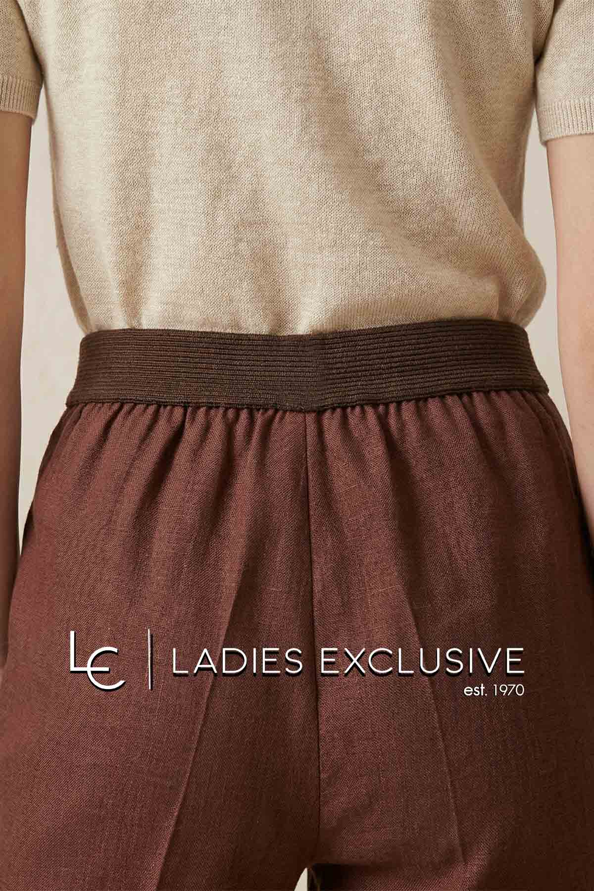 BELLA P. Παντελόνι καφέ λινό με λάστιχο στη μέση. Γίνεται σετ με το πουκάμισο με κωδικό 21261.06119.1704.08.