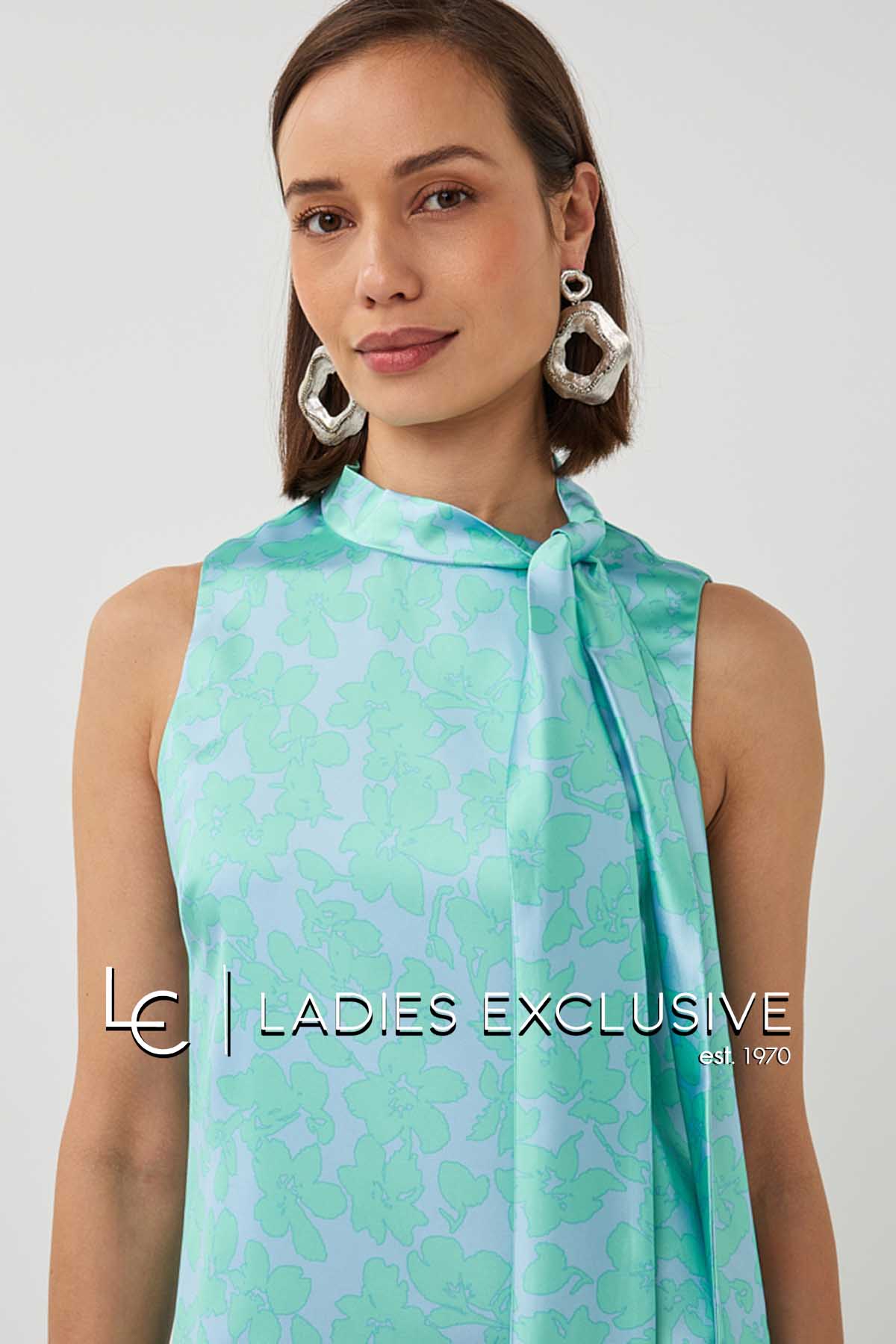 ESQUALO Φόρεμα με εμπριμέ λουλούδια αμάνικο σατέν, με δέσιμο στο λαιμό.