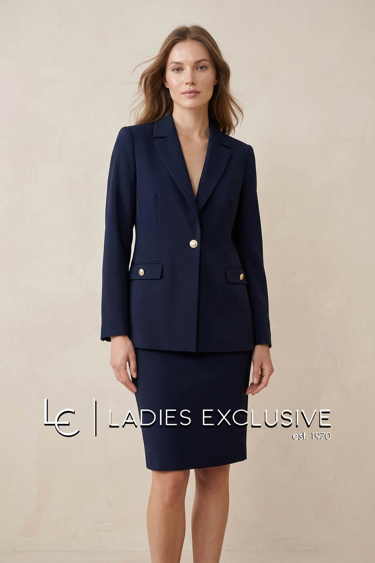 ESTEL Φούστα μπλε κρεπ σε ίσα γραμμή. Γίνεται σετ με το σακάκι με κωδικό 08700-00.03.