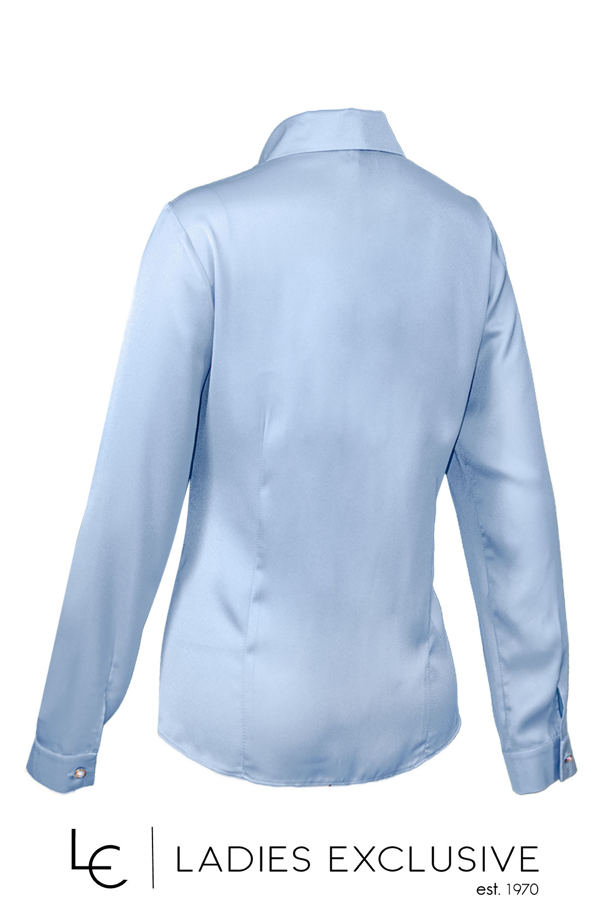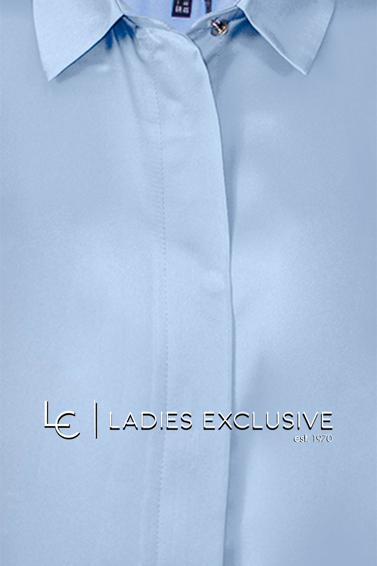ESTEL Πουκάμισο σιέλ σατέν με πέτο γιακά και κρυφή πατιλέτα.