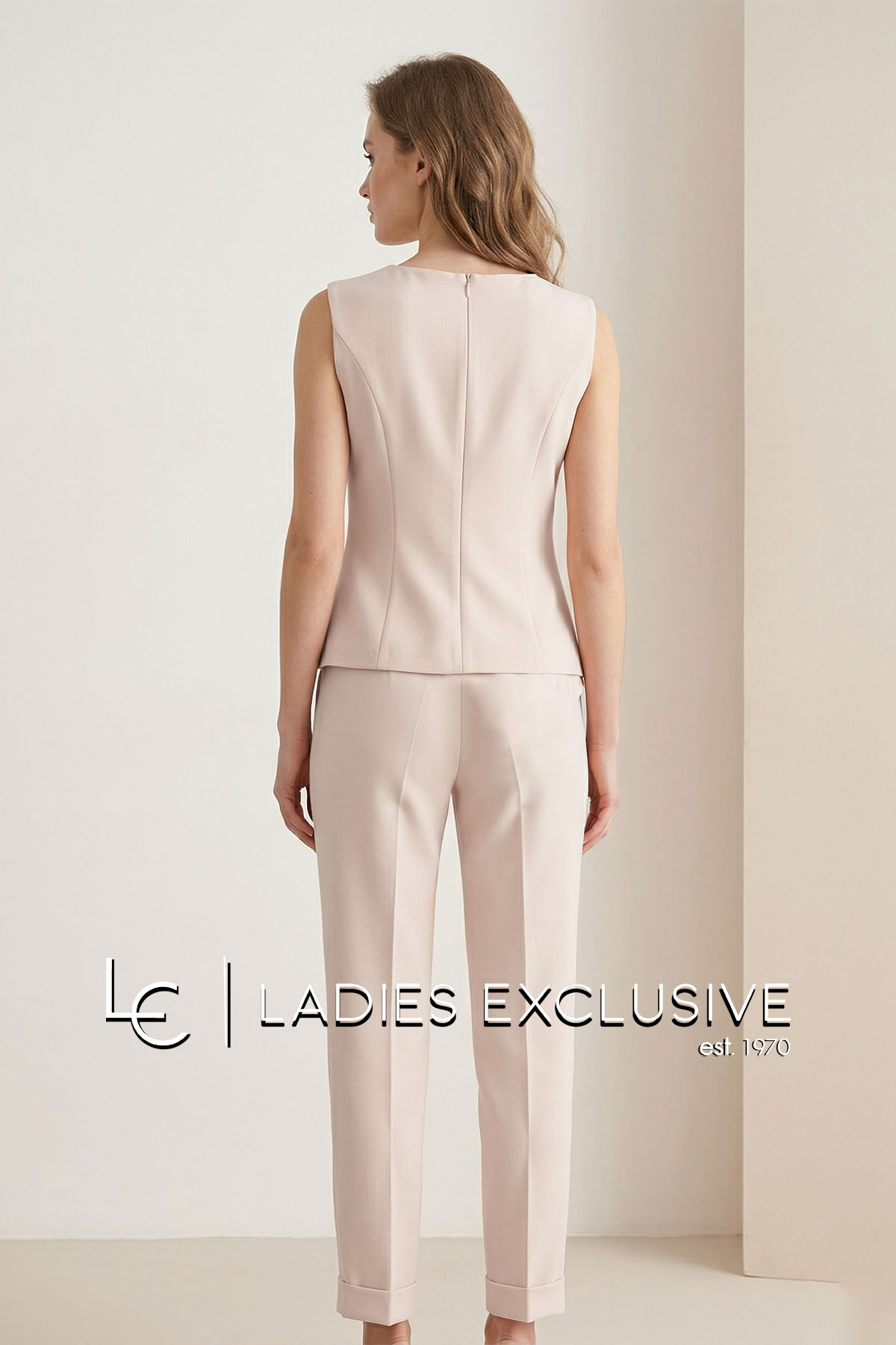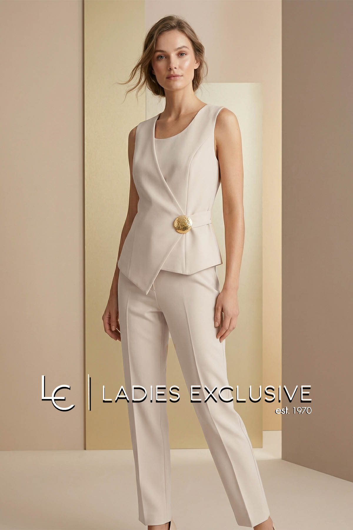 ESTEL Σετ 2 τεμαχίων μπεζ που αποτελείται από γιλέκο κρεπ με ιδιαίτερη αγκράφα και παντελόνι κρεπ αστραγάλου.
