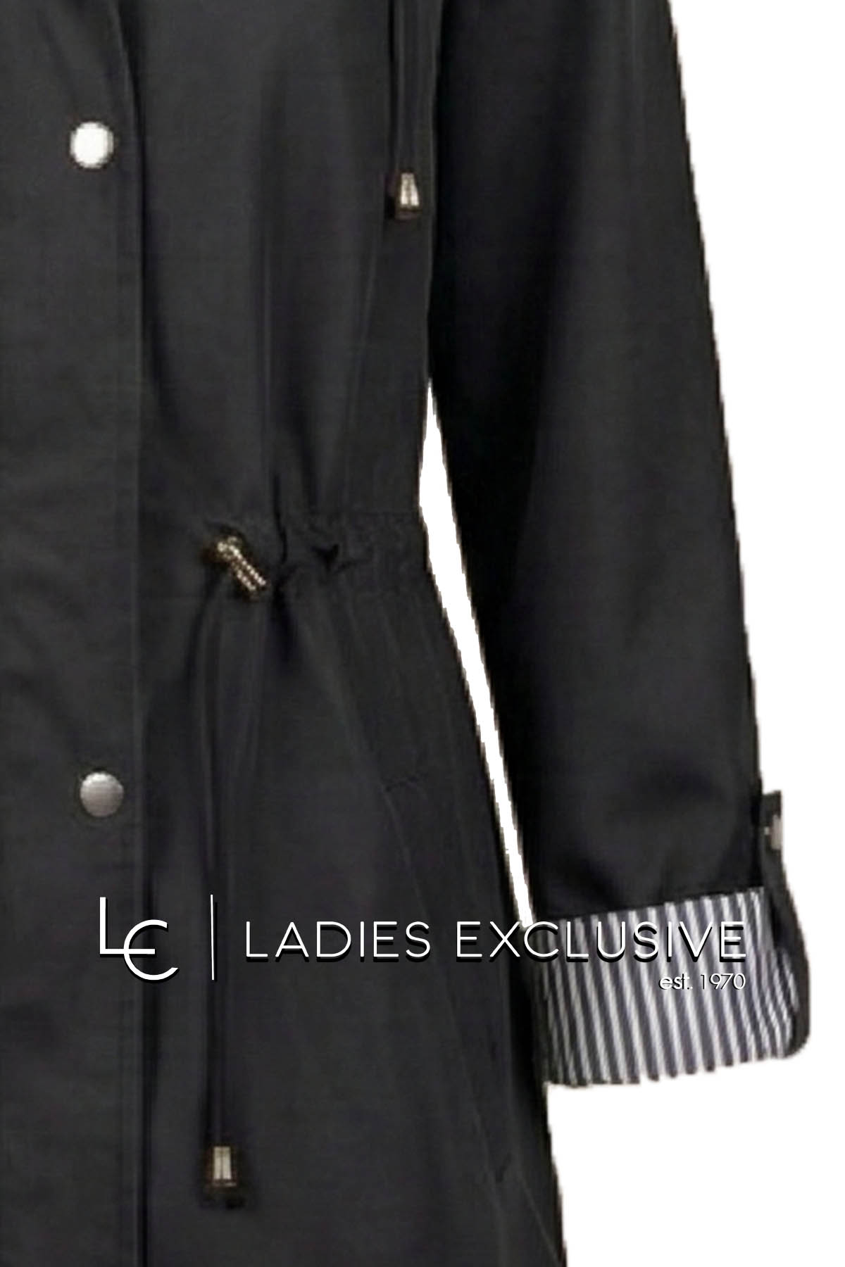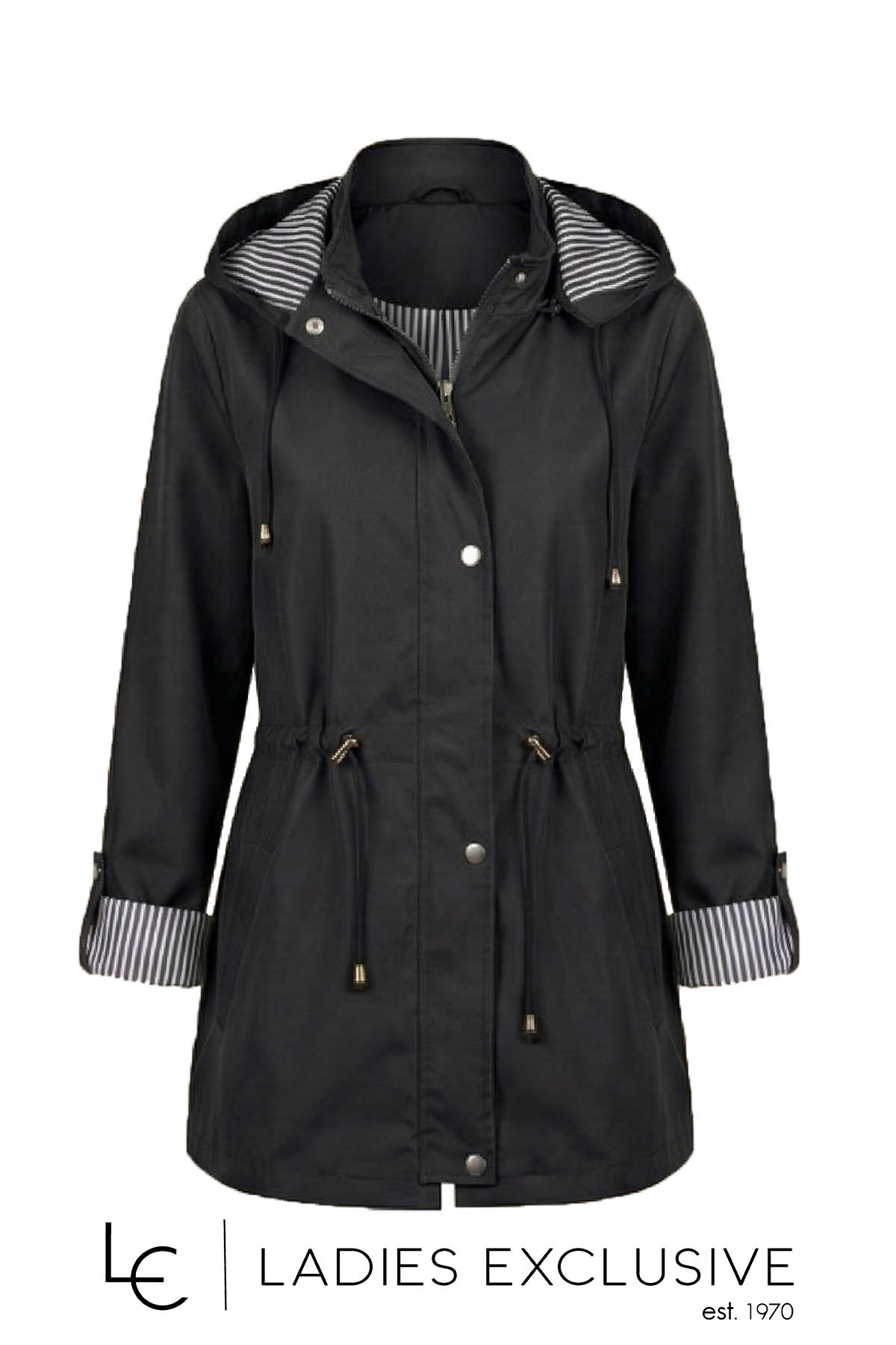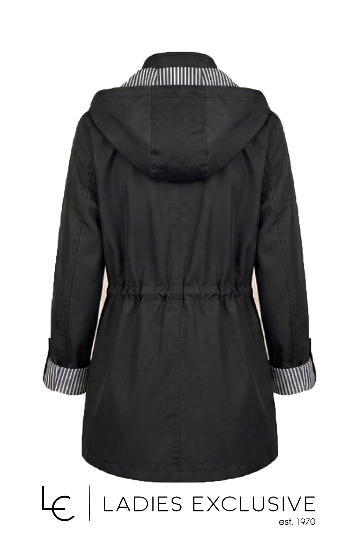 FIBES Μπουφάν μαύρο αντιανεμικό με κουκούλα που αφαιρείται και ελαστικό σούρωμα στη μέση.