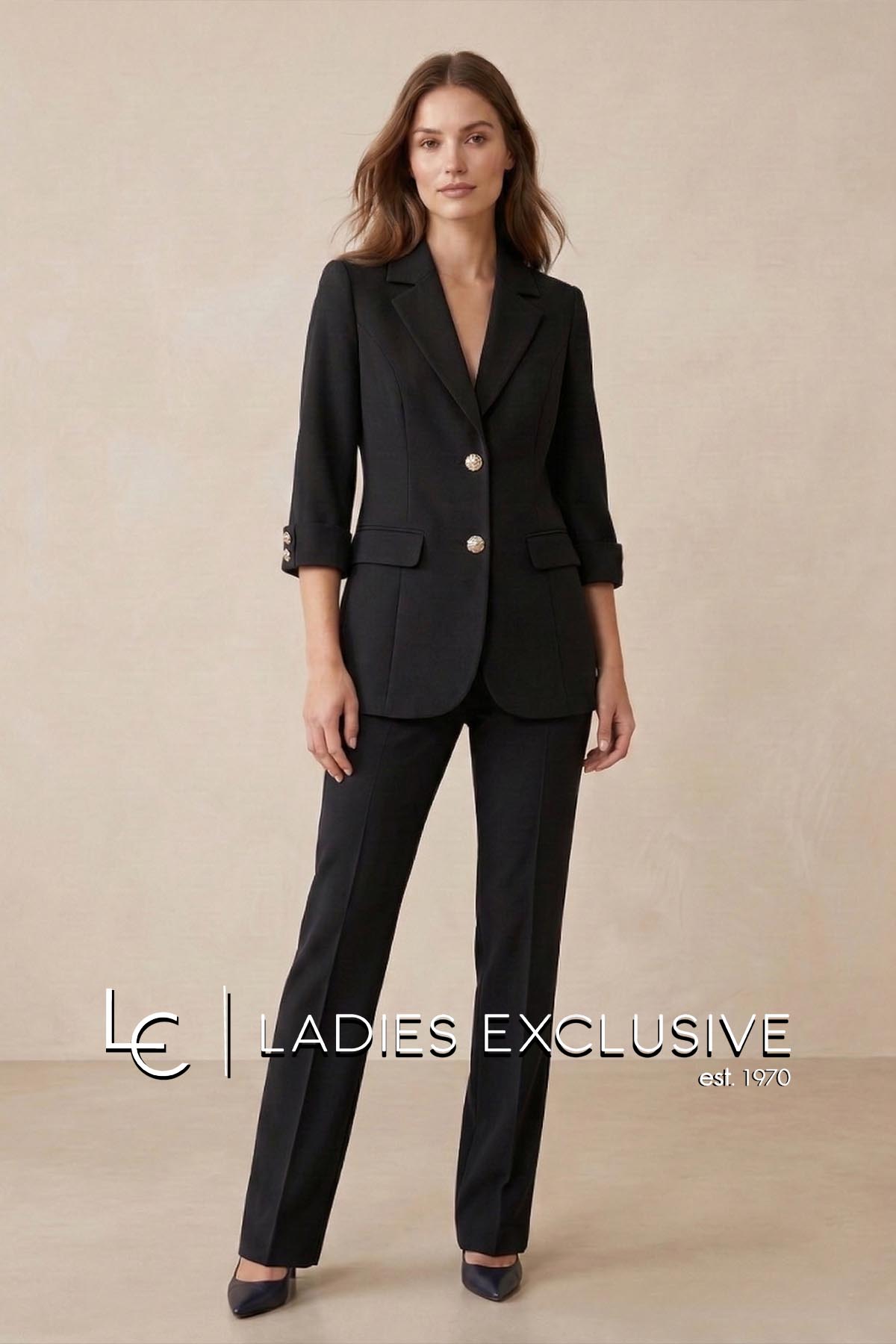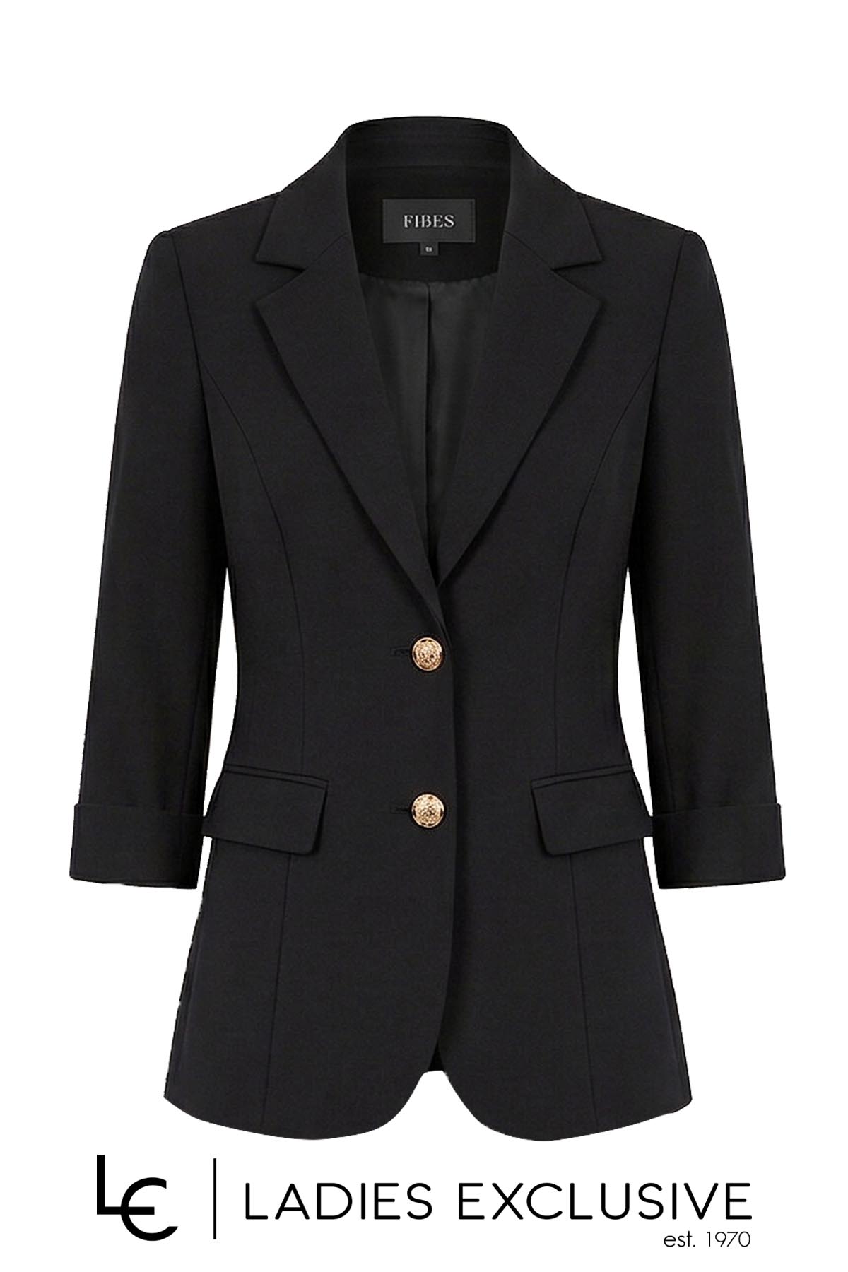 FIBES Σακάκι μαύρο κρεπ με μανίκι 3/4 και τσέπες με καπάκια. Γίνεται σετ με το παντελόνι με κωδικό 04-8102.01.
