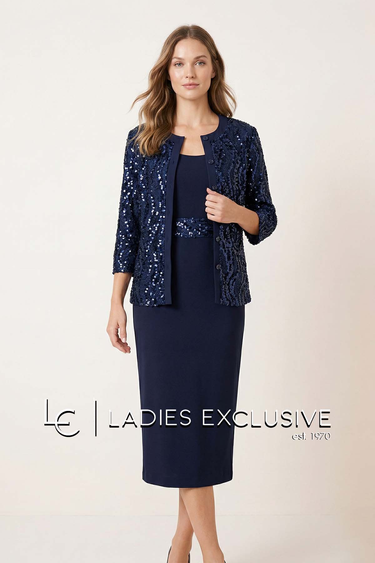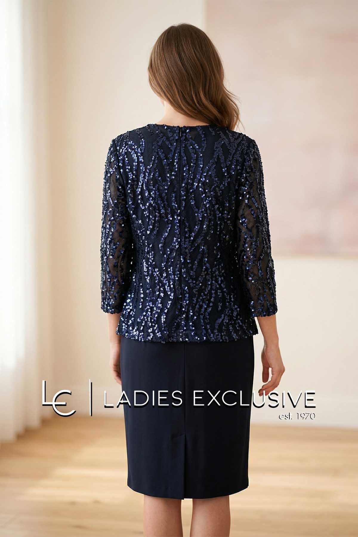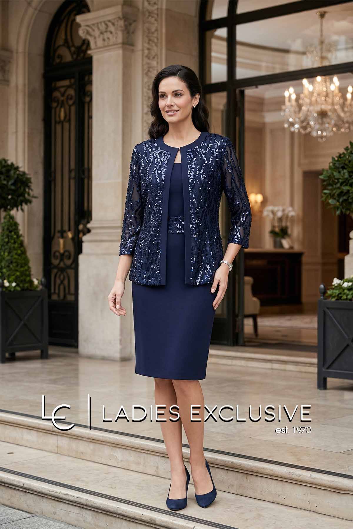 FIBES Σετ 2 τεμαχίων βραδινό που αποτελείται απο μπλε μπολερό κεντημένο με παγιέτες και φόρεμα κρεπ κοντομάνικο με παγιέτες στη μέση.