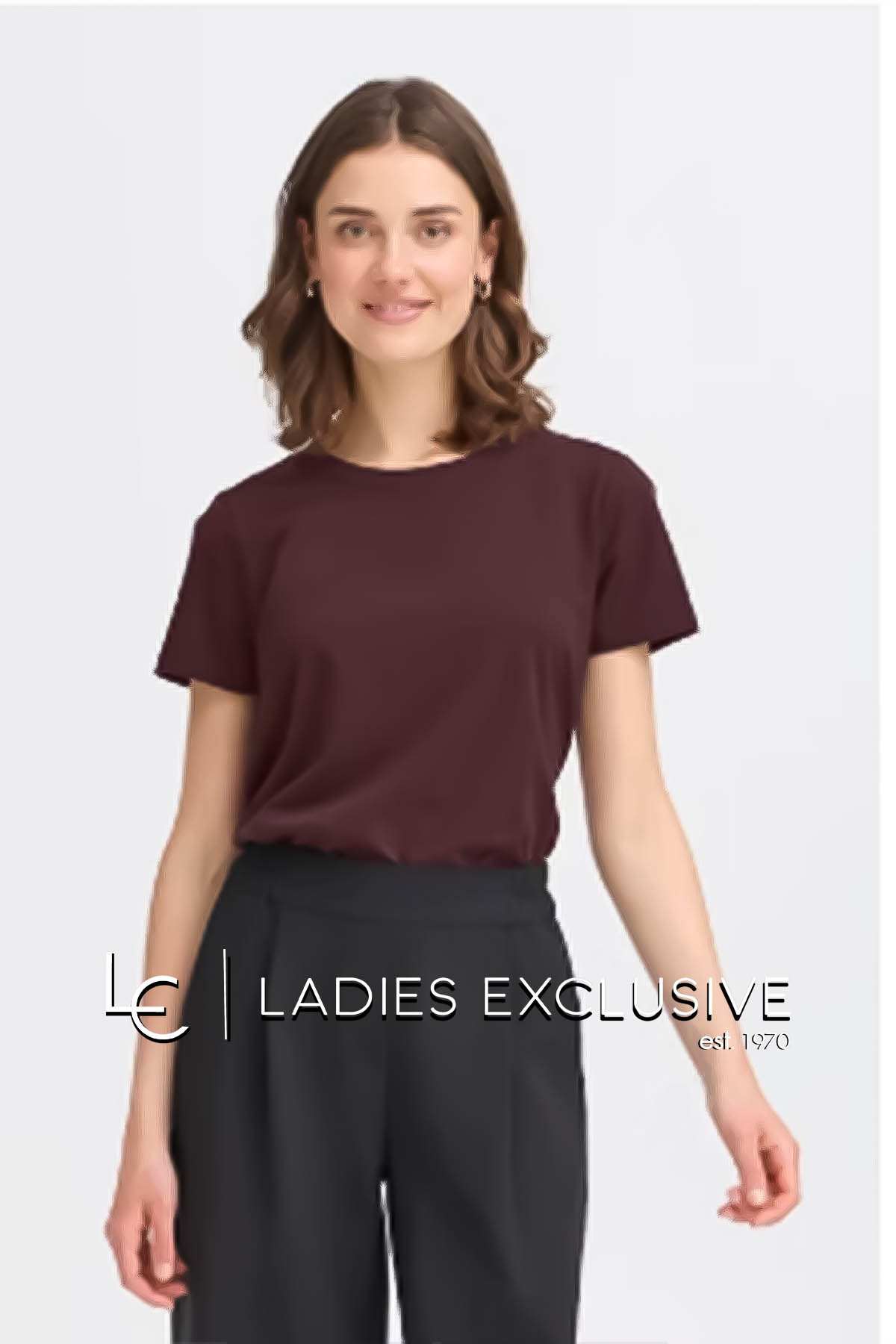 FRANSA Μπλούζα γκρενά κοντομάνικη μονόχρωμη με στρογγυλή λαιμόκοψη.