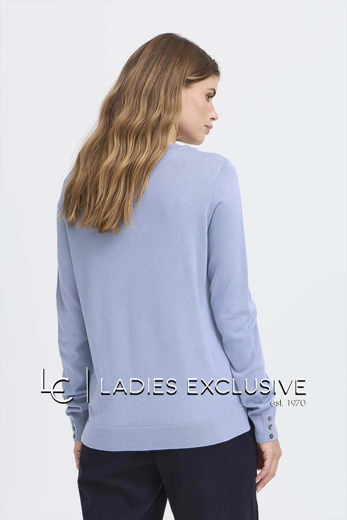 FRANSA Μπλούζα σιέλ πλεκτή με στρογγυλή λαιμόκοψη και διακοσμητικά κουμπιά στο μανίκι.