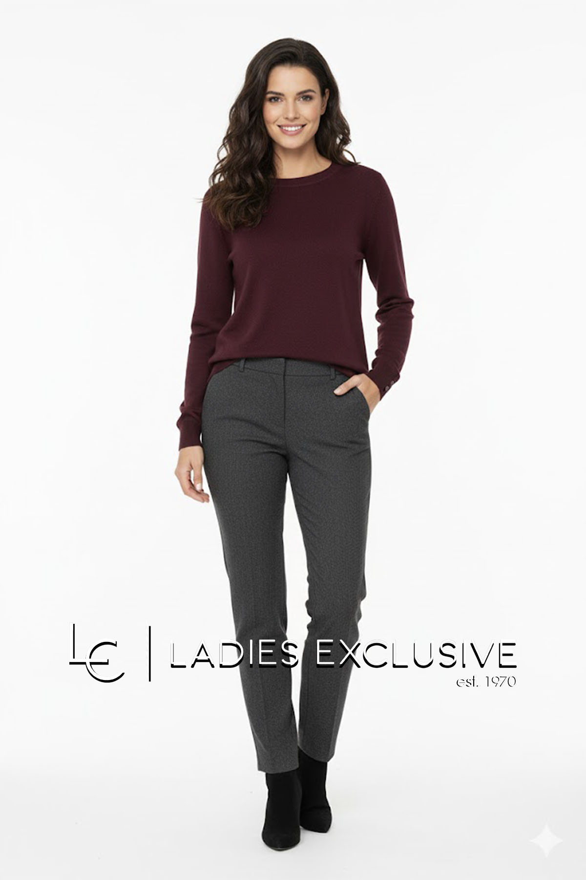 FRANSA Μπλούζα γκρενά πλεκτή με στρογγυλή λαιμόκοψη και διακοσμητικά κουμπιά στο μανίκι.